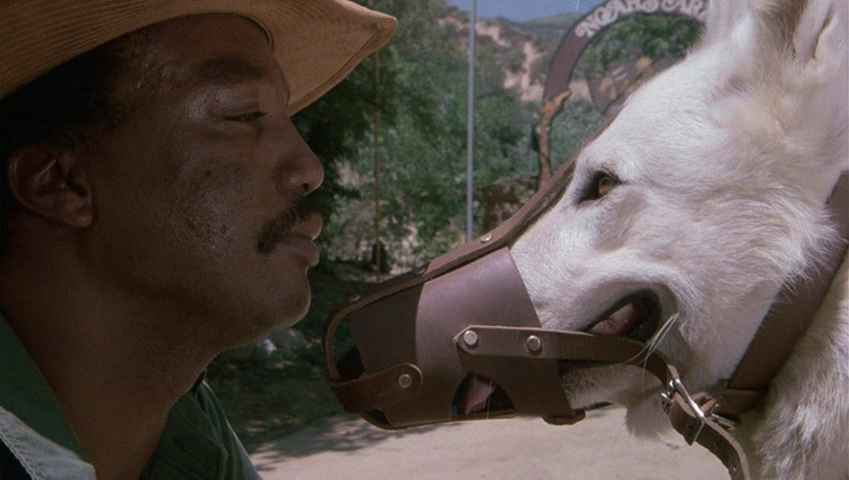 - [fuente] Una joven actriz llamada Julie Sawyer (Kristy McNichol) atropella a un perro pastor alemán de color blanco, quedando a su cuidado al mismo tiempo que intenta buscar a su dueño. El perro se muestra en todo momento cariñoso y protector con Julie, pero ésta ha advertido un comportamiento extraño en el can: su conducta pacífica cambia cuando se encuentra ante un hombre o mujer de raza negra.